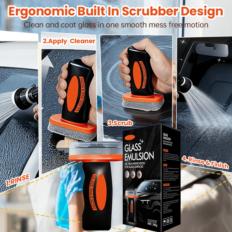 Forget about fumbling with messy sprays and paper towels. The all in one applicator fits perfectly in your hand and allows you to deep clean and coat the glass simultaneously in one easy motion.